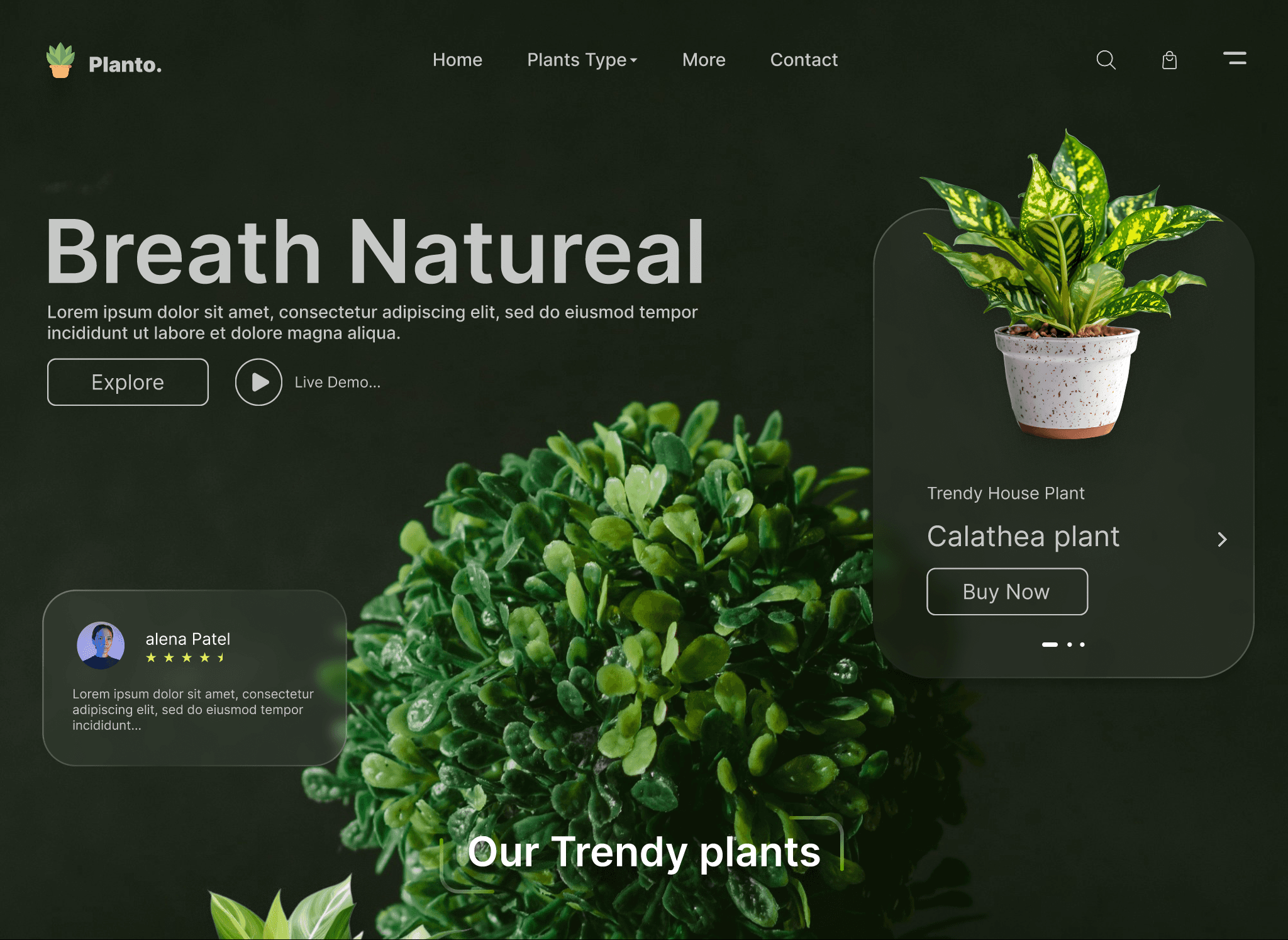 A modern landing page design created for Planto, an online plant shop focused on bringing nature closer to people. The design emphasizes a clean layout, natural color palettes, and a user-friendly interface to create a calm and engaging shopping experience for plant lovers.